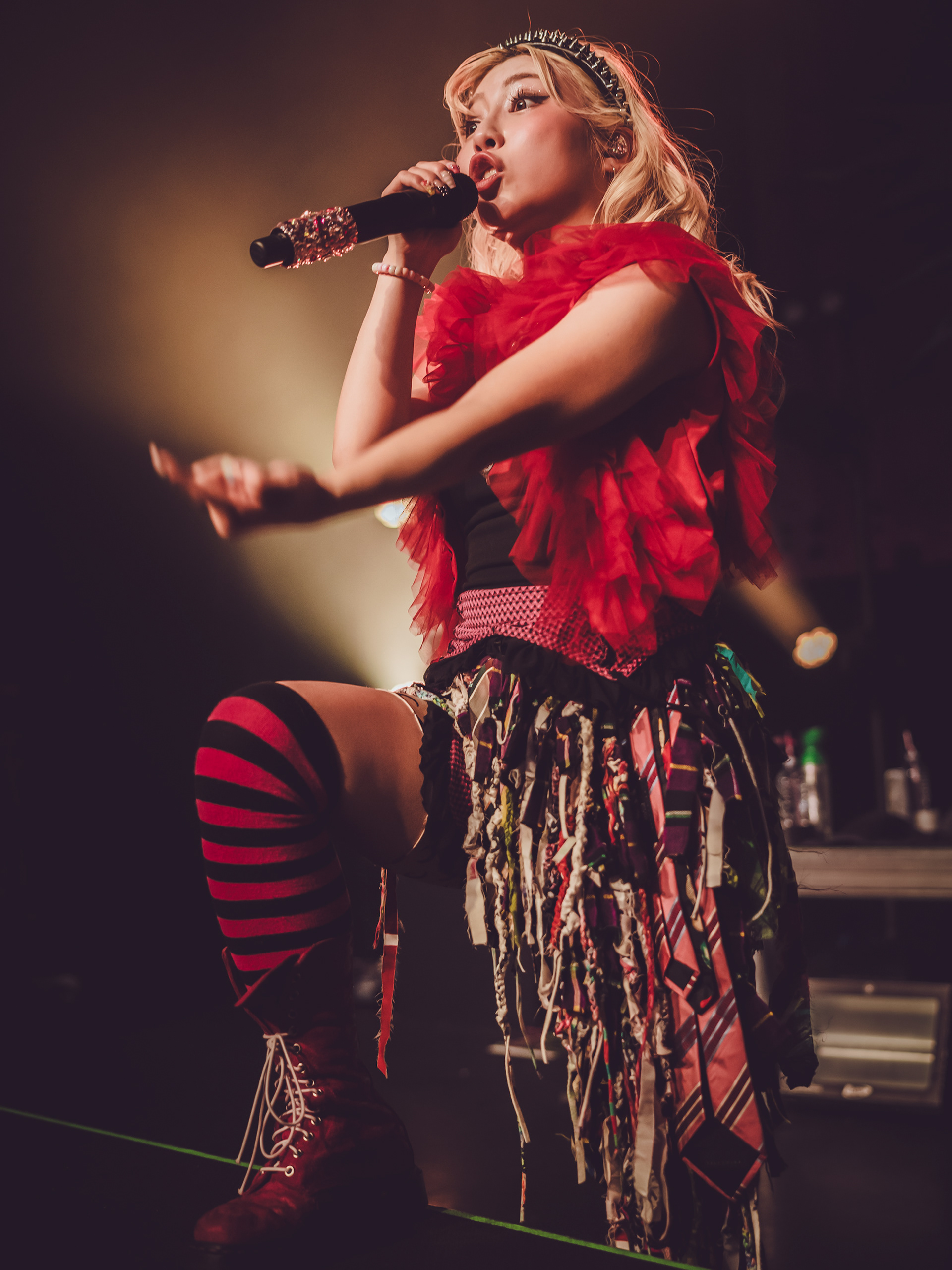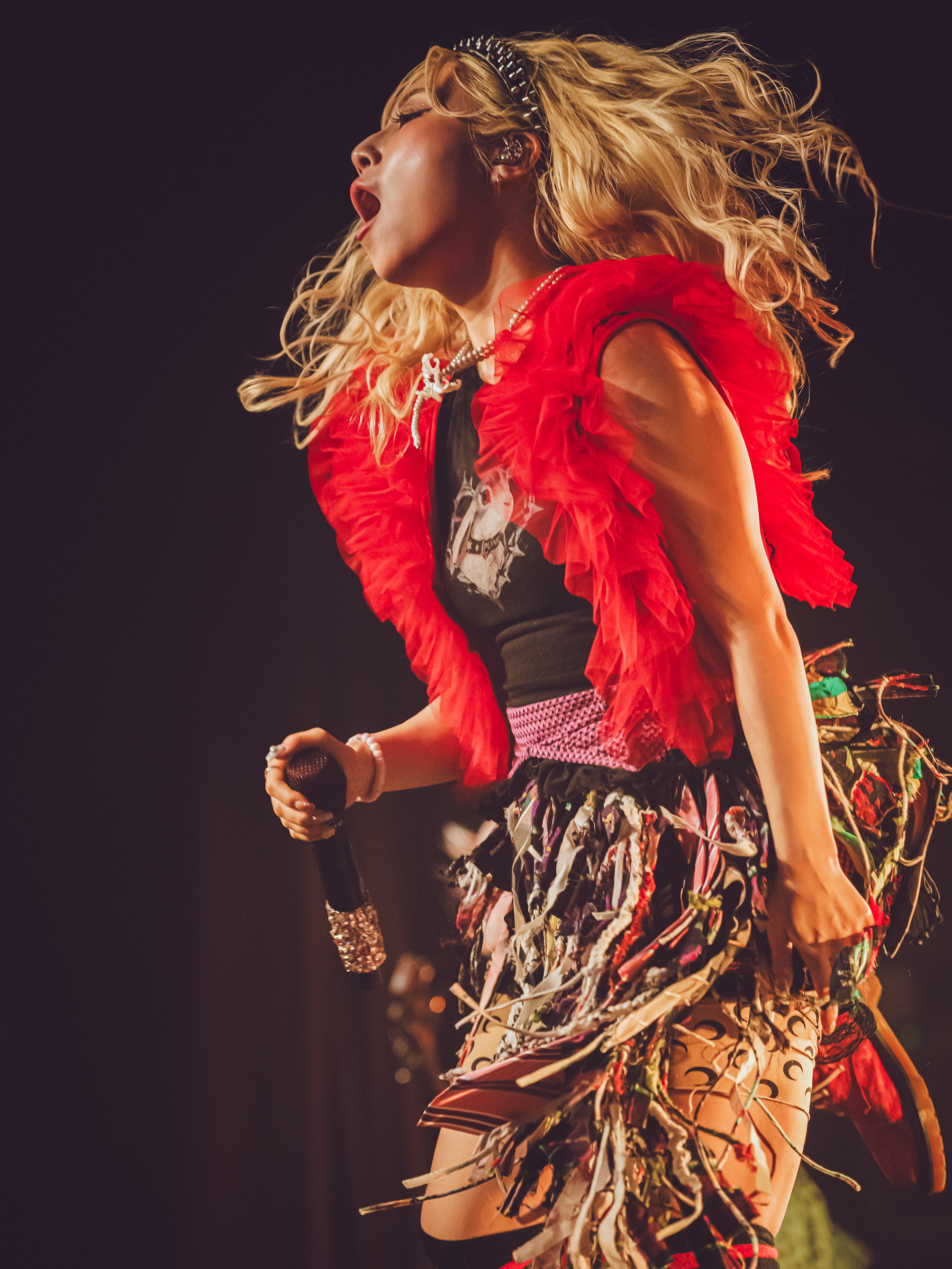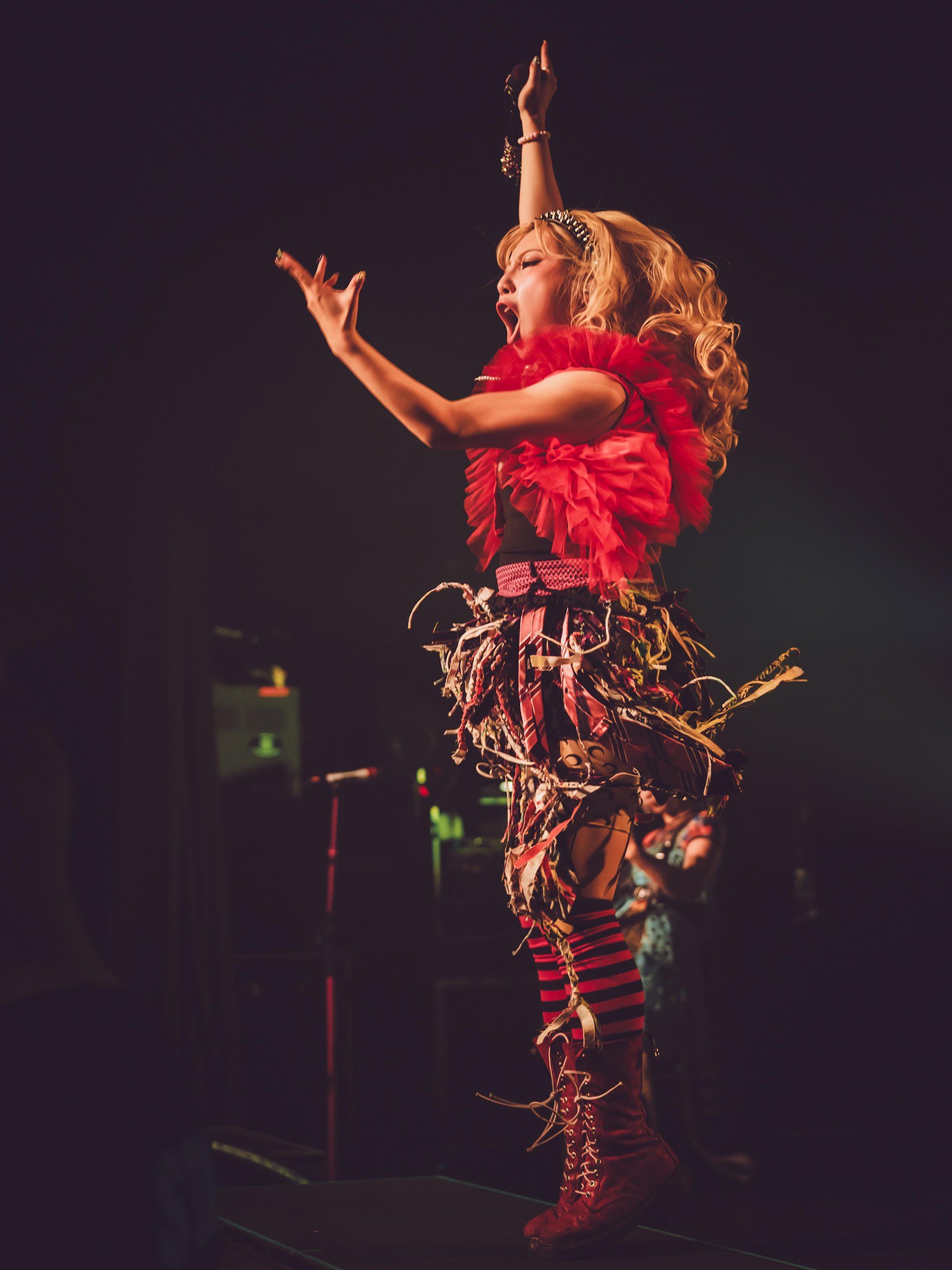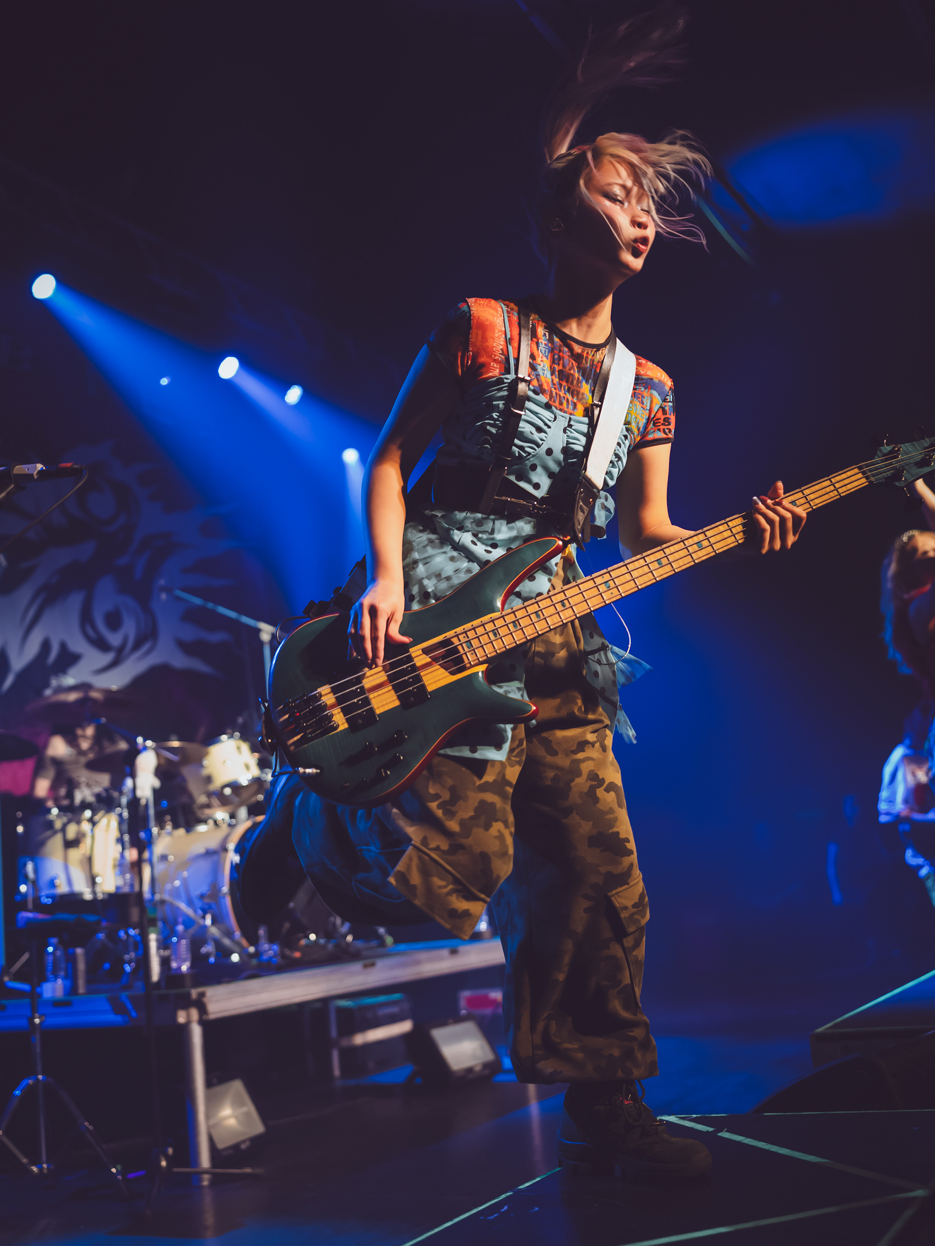 As a new fan, what hit hardest was how unpredictable every track felt. Songs didn’t follow neat verse-chorus patterns; instead, they lurched between rap-like flows, blast-beat intensity, and bright, almost anime-style melodies that felt deceptively playful before collapsing into something heavy again. It gave the whole set this rollercoaster energy where you never quite settled in—just constant motion, like the band was daring you to keep up. That contrast between “cute” and “chaotic” is kind of their signature, a mix fans often describe as explosive and genre-defying rather than cleanly defined.