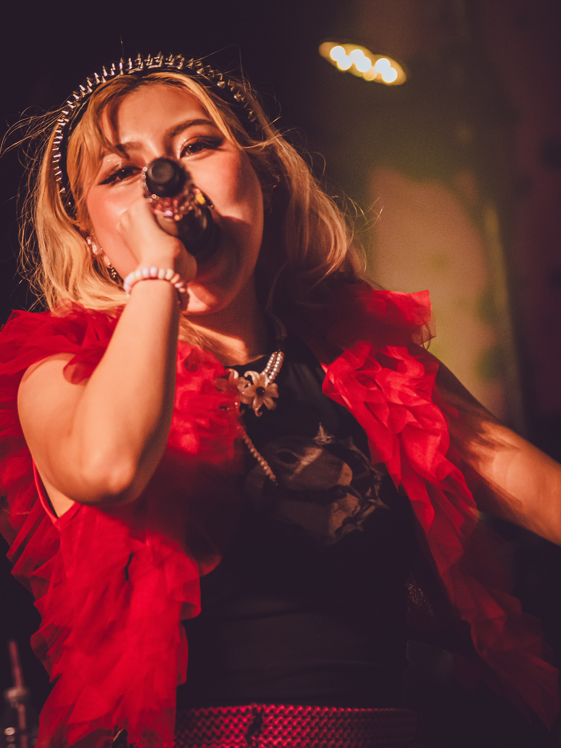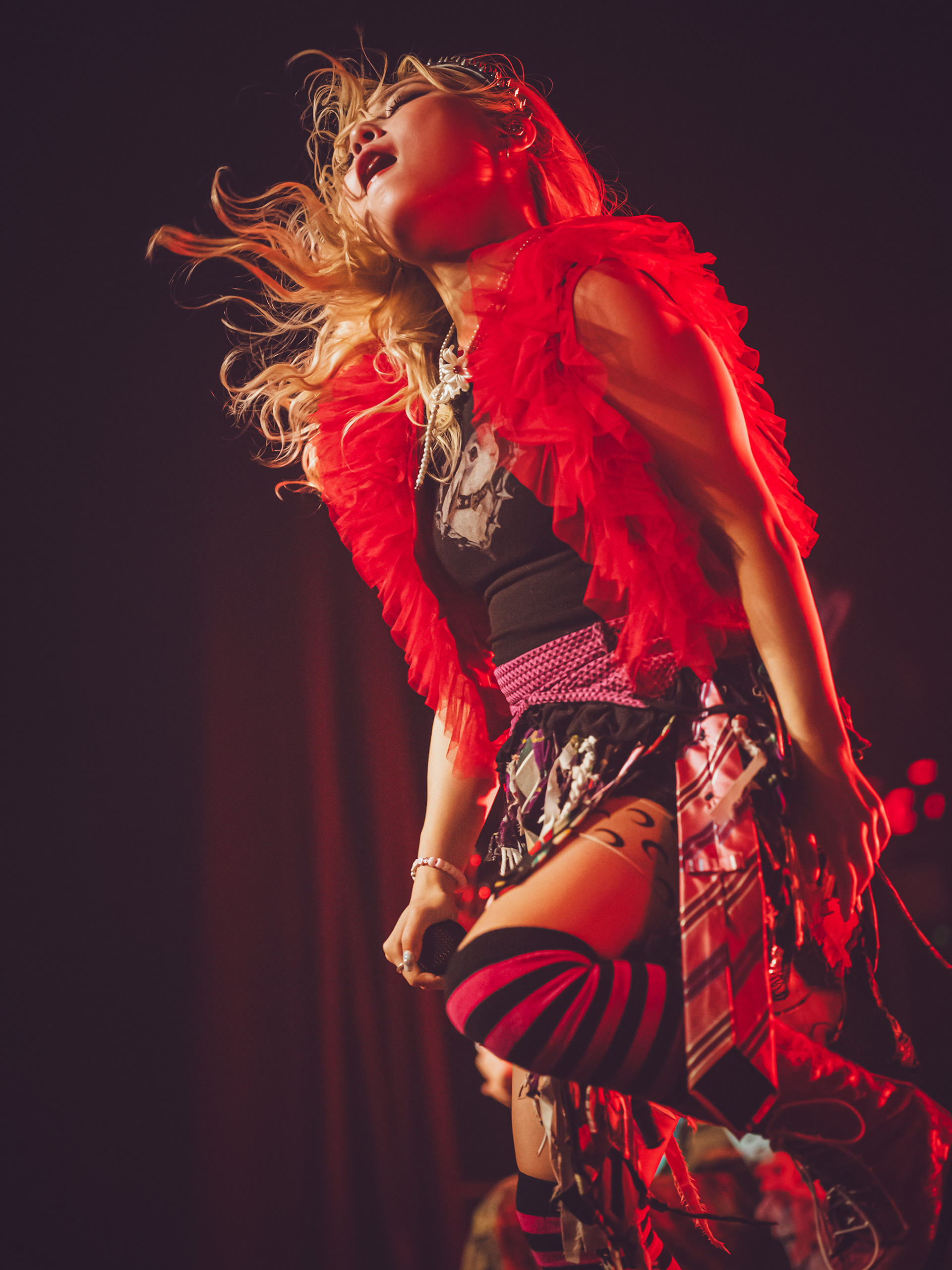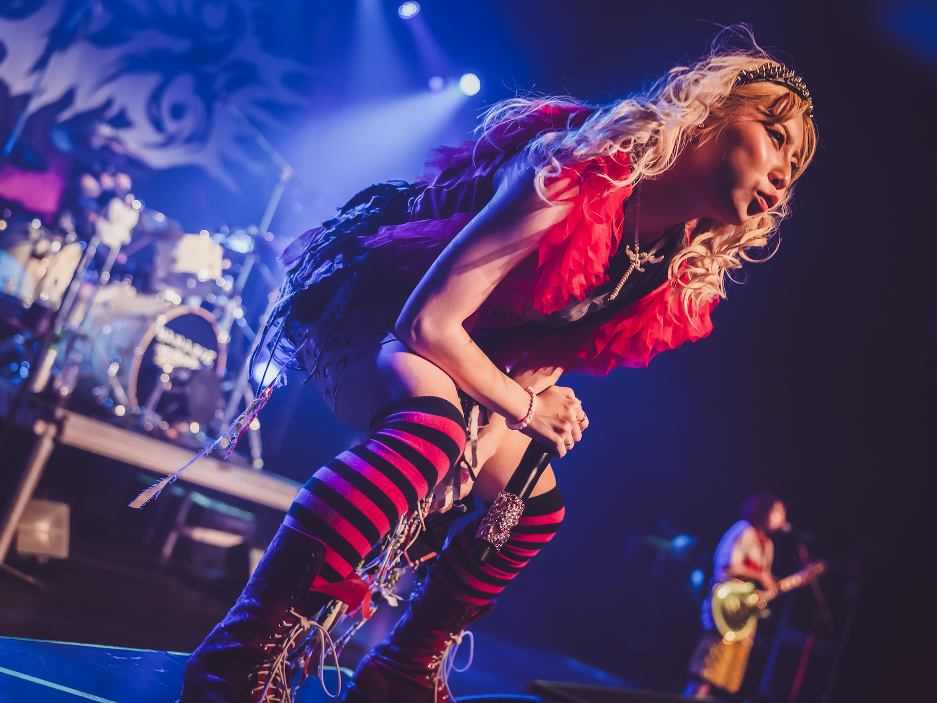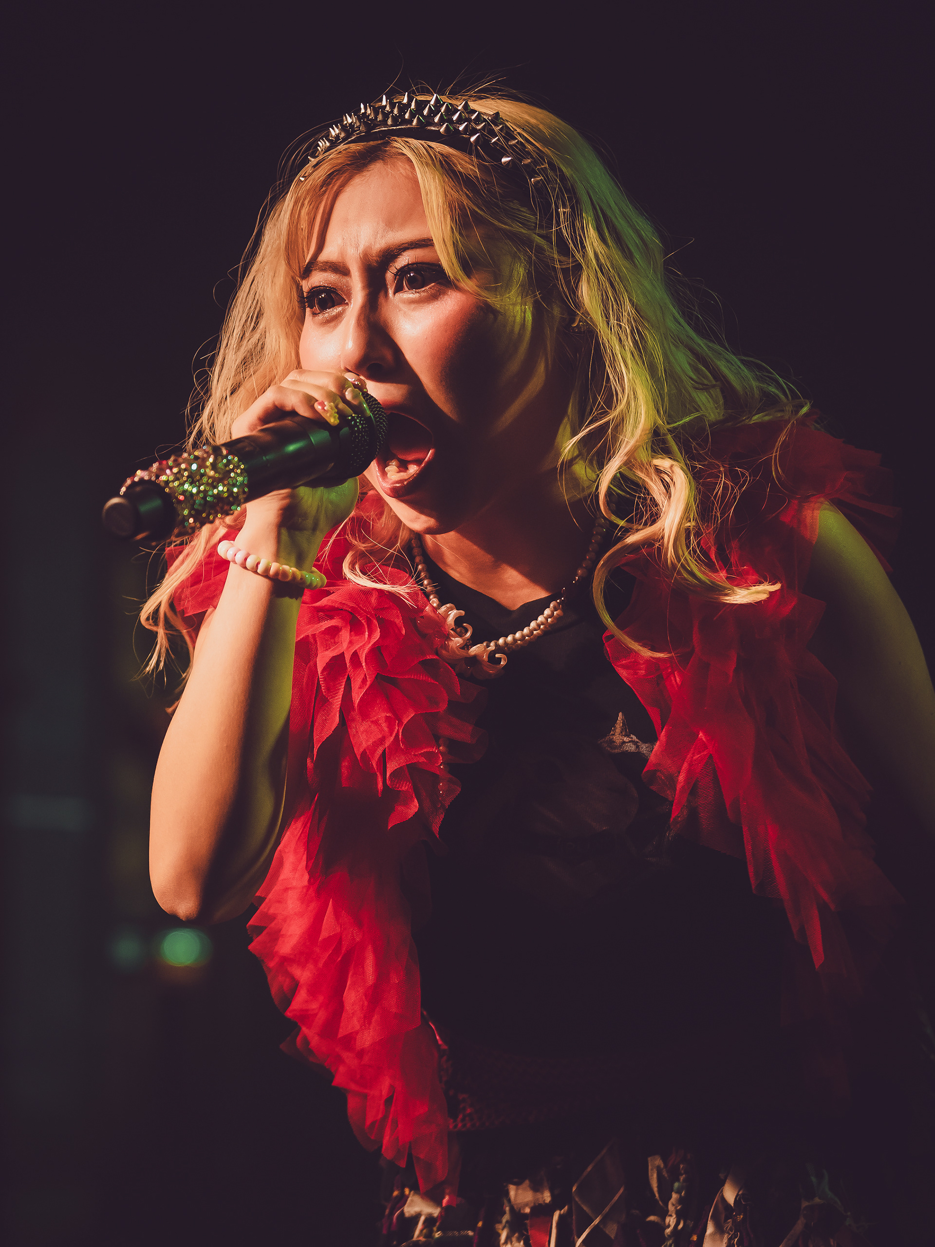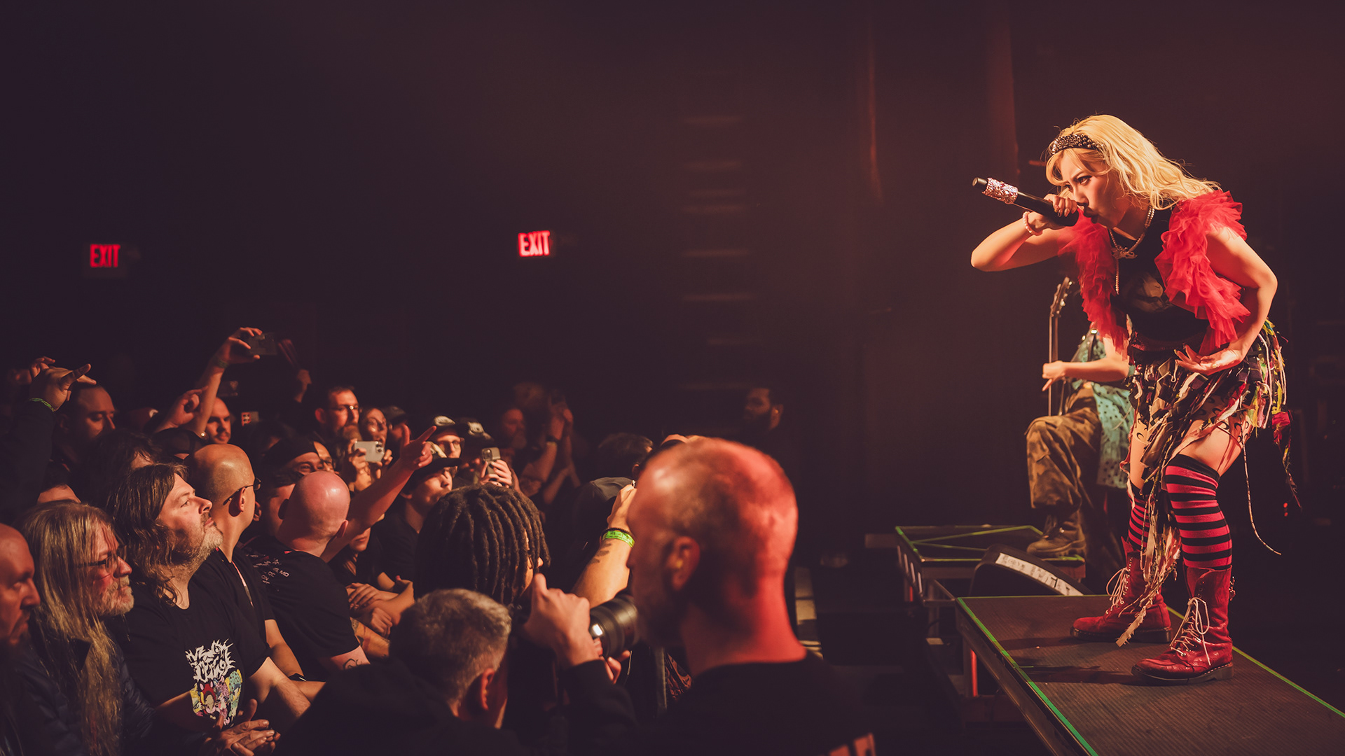 As a new fan, what hit hardest was how unpredictable every track felt. Songs didn’t follow neat verse-chorus patterns; instead, they lurched between rap-like flows, blast-beat intensity, and bright, almost anime-style melodies that felt deceptively playful before collapsing into something heavy again. It gave the whole set this rollercoaster energy where you never quite settled in—just constant motion, like the band was daring you to keep up. That contrast between “cute” and “chaotic” is kind of their signature, a mix fans often describe as explosive and genre-defying rather than cleanly defined.